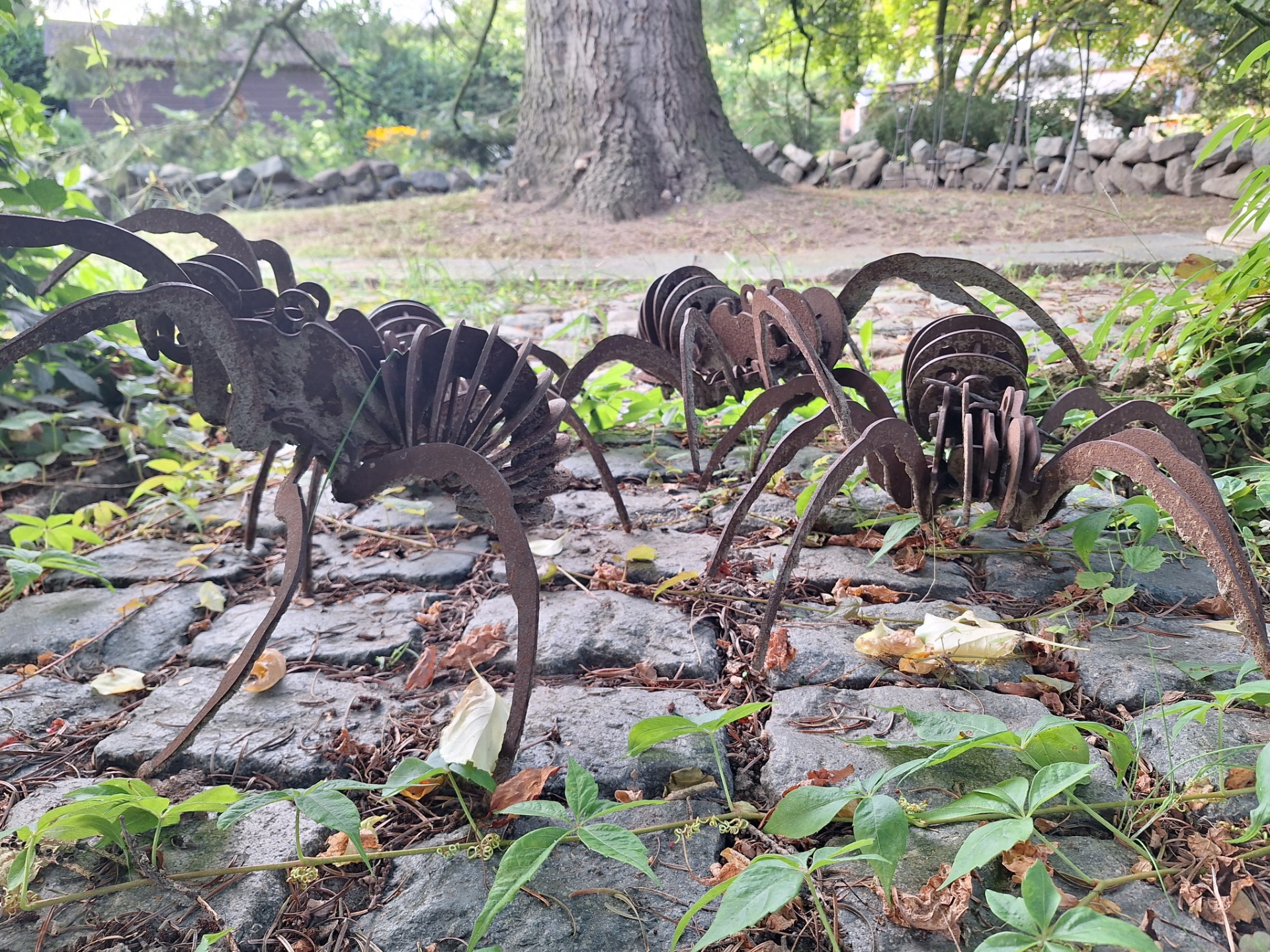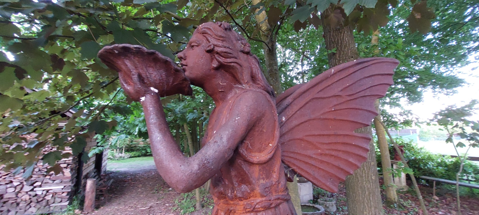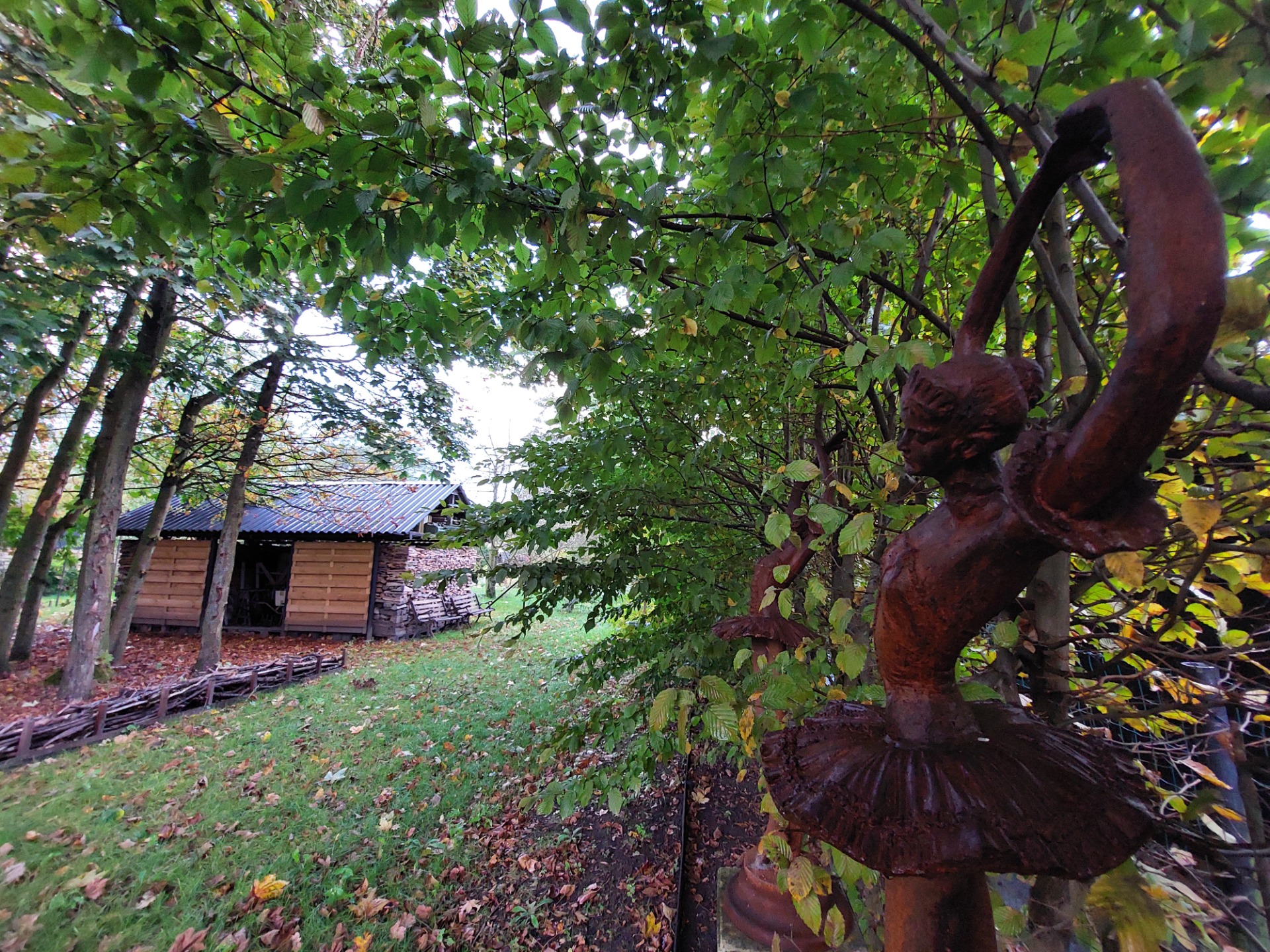 of aan betonnen waterschalen (Sculptured by Nature / Etienne Vanden Abeele). Zonnebaden kan in de geborgenheid van de boomgaard