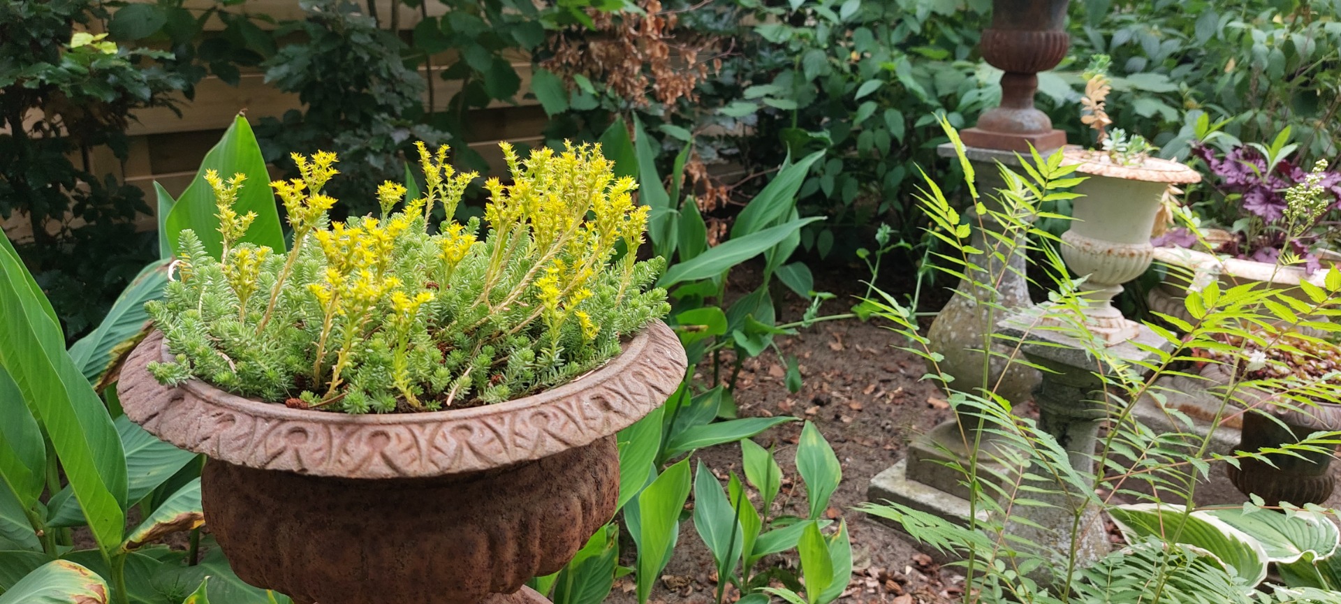 De borders in Jardin Daniel zijn weelderig, met zowel inheems loof als prairieplanten die goed tegen de droogte kunnen: Achillea, Verbena, Echinacea, Salvia, Gaura, Rudbeckia, Solidago, … Er werd uitbundig aangeplant: loofbomen, rododendrons, brem en kornoelje, maar ook varens, Hosta en Stipa. Wie op ontdekking gaat in de tuin ontdekt gegarandeerd heel wat soorten Euphorbia en Sedum.