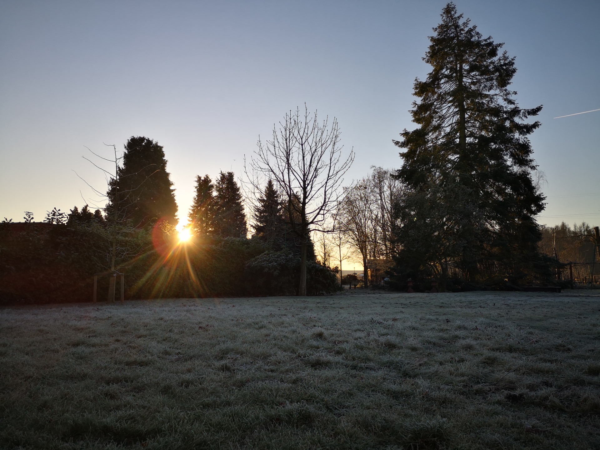 Ochtendgloren of avondrood, verpozen kan onder de armen